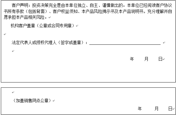 您签署本风险揭示书、客户协议书,并将资金委托给中国建设银行重庆市分行运作是您真实的意思表示。本风险揭示书及相应的客户协议书、产品说明书、客户权益须知将共同构成贵我双方理财合同的有效组成部分。