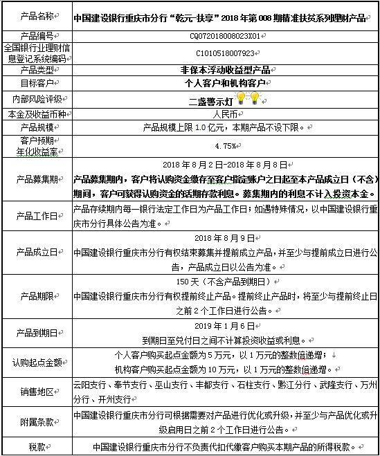 3.中国建设银行重庆市分行可根据市场情况等调整产品规模上、下限,并最迟于调整规模上下限当日进行公告。
