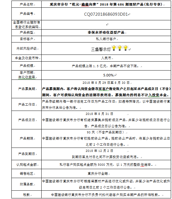 3.中国建设银行重庆市分行可根据市场情况等调整产品规模上、下限,并最迟于调整规模上下限当日进行公告。