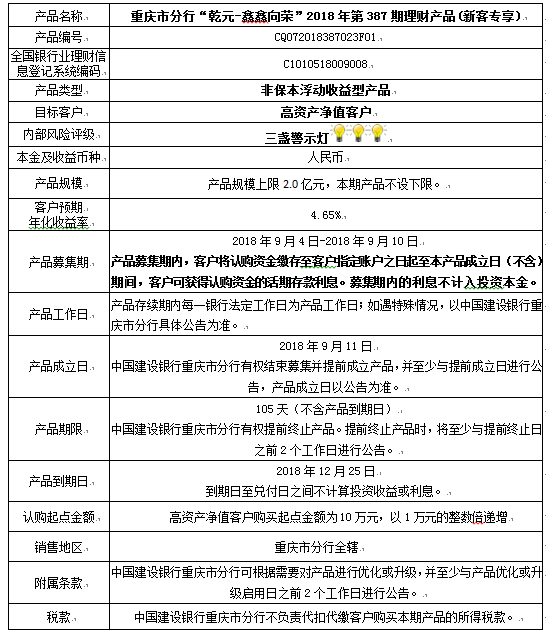 3.中国建设银行重庆市分行可根据市场情况等调整产品规模上、下限,并最迟于调整规模上下限当日进行公告。