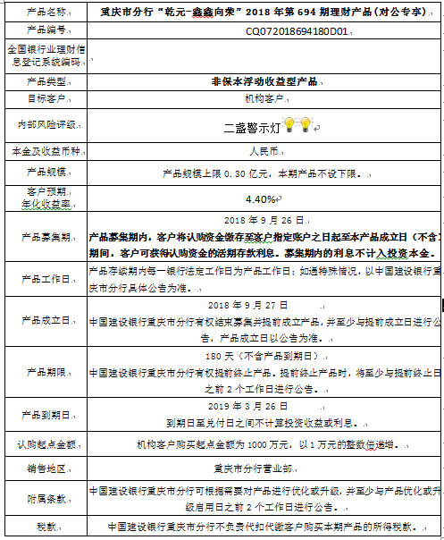 3.中国建设银行重庆市分行可根据市场情况等调整产品规模上、下限,并最迟于调整规模上下限当日进行公告。