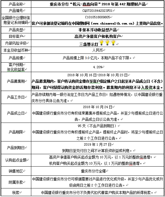 2018年第442期理财产品说明书