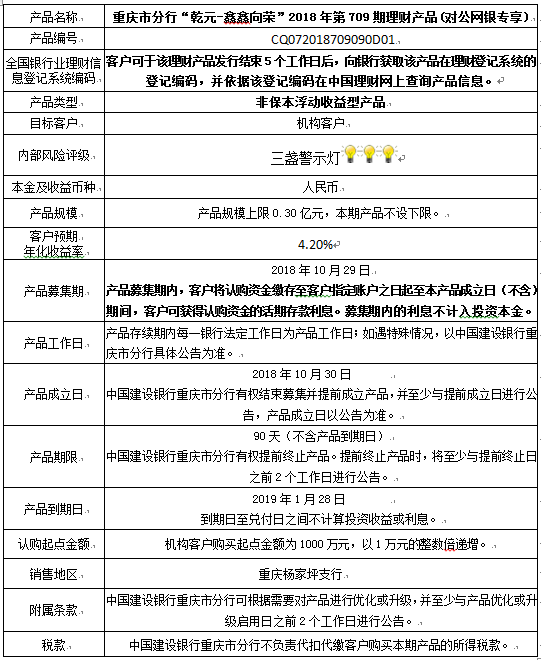 3.中国建设银行重庆市分行可根据市场情况等调整产品规模上、下限,并最迟于调整规模上下限当日进行公告。