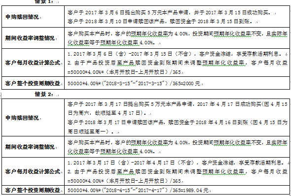 假设客户投资本金5万元,实际参与理财的天数20天,实际年化收益率4.00%。