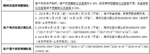 假设客户投资本金5万元,实际参与理财的天数20天,实际年化收益率5.00%。