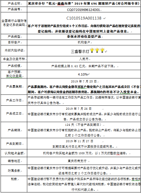 2019年第696期理财产品说明书