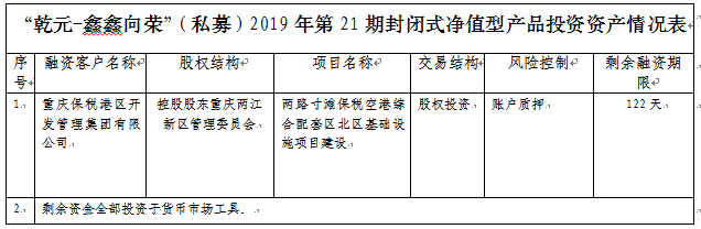 中国建设银行重庆市分行“乾元-鑫鑫向荣”(私募)2019年 第21期封闭式净值型人民币理财产品风险揭示书和产品说明书