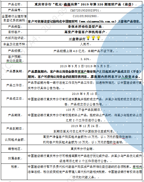 3.中国建设银行重庆市分行可根据市场情况等调整产品规模上、下限,并最迟于调整规模上下限当日进行公告。