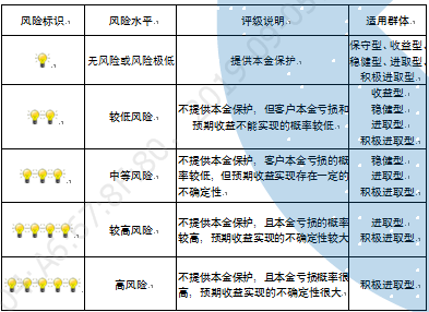 本产品为非保本浮动收益型理财产品,不保证本金和收益,请您充分认识投资风险,谨慎投资。本期产品期限为363天(中国建设银行有权对产品进行展期或提前终止),存续期内,产品不接受申购或赎回申请。本期产品内部风险评级级别为盏警示灯 ,风险水平属于较低风险。最不利情况下,您将损失全部收益甚至包括全部本金。本理财产品适用于收益型、稳健型、进取型 积极进取型客户。