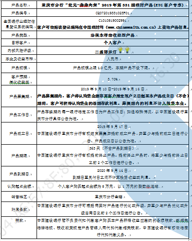 中国建设银行重庆市分行“乾元-鑫鑫向荣” 2019年第331期理财产品风险揭示书和产品说明书