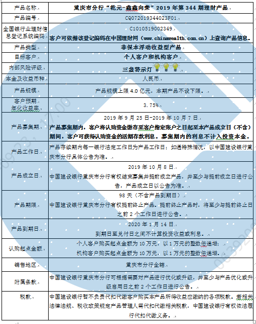 2019年第344期理财产品说明书