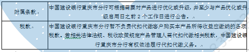 1.如遇国家金融政策出现重大调整并影响到本产品的正常运作时,中国建设银行重庆市分行有权利但无义务提前终止本产品。