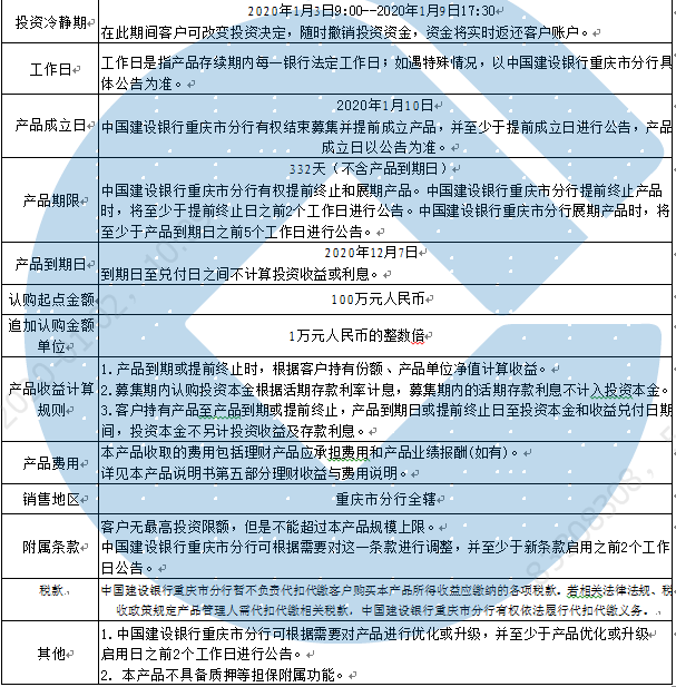2.因市场发生极端重大变动或突发性事件等情形时,中国建设银行重庆市分行有权利但无义务提前终止本产品。