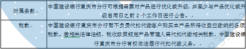1.如遇国家金融政策出现重大调整并影响到本产品的正常运作时,中国建设银行重庆市分行有权利但无义务提前终止本产品。