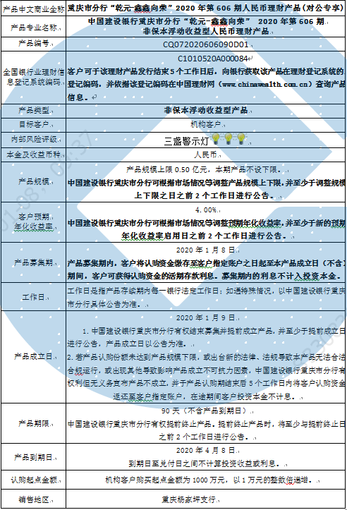 2020年第606期人民币理财产品说明书