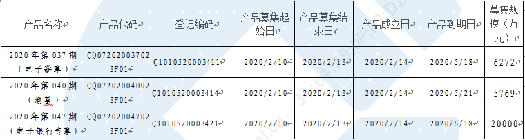 根据与投资者的约定,现将2020年2月11日-2020年2月14日期间理财产品成立情况信息进行披露: