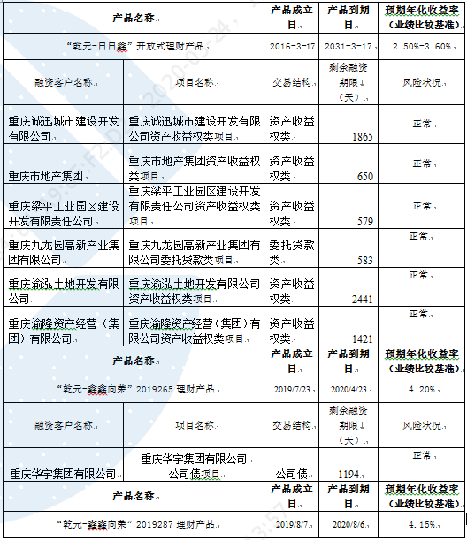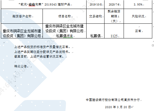 理财产品非标资产披露及资产质量变化公告(2020年3月20日)
